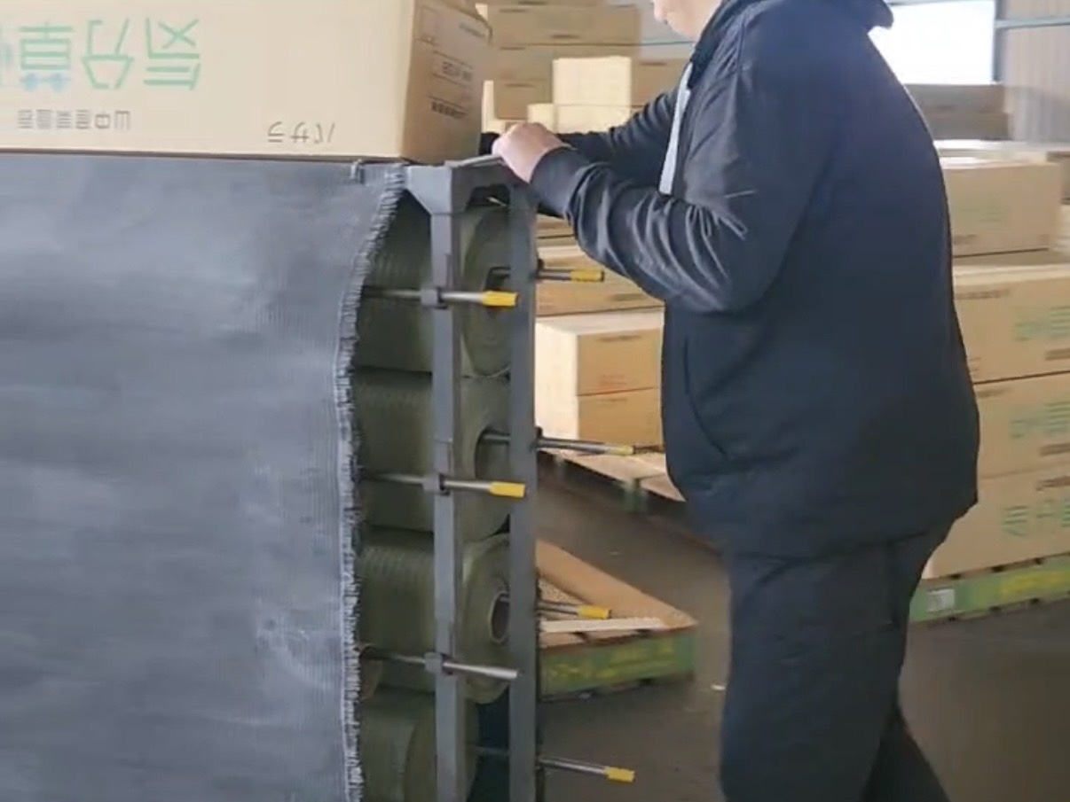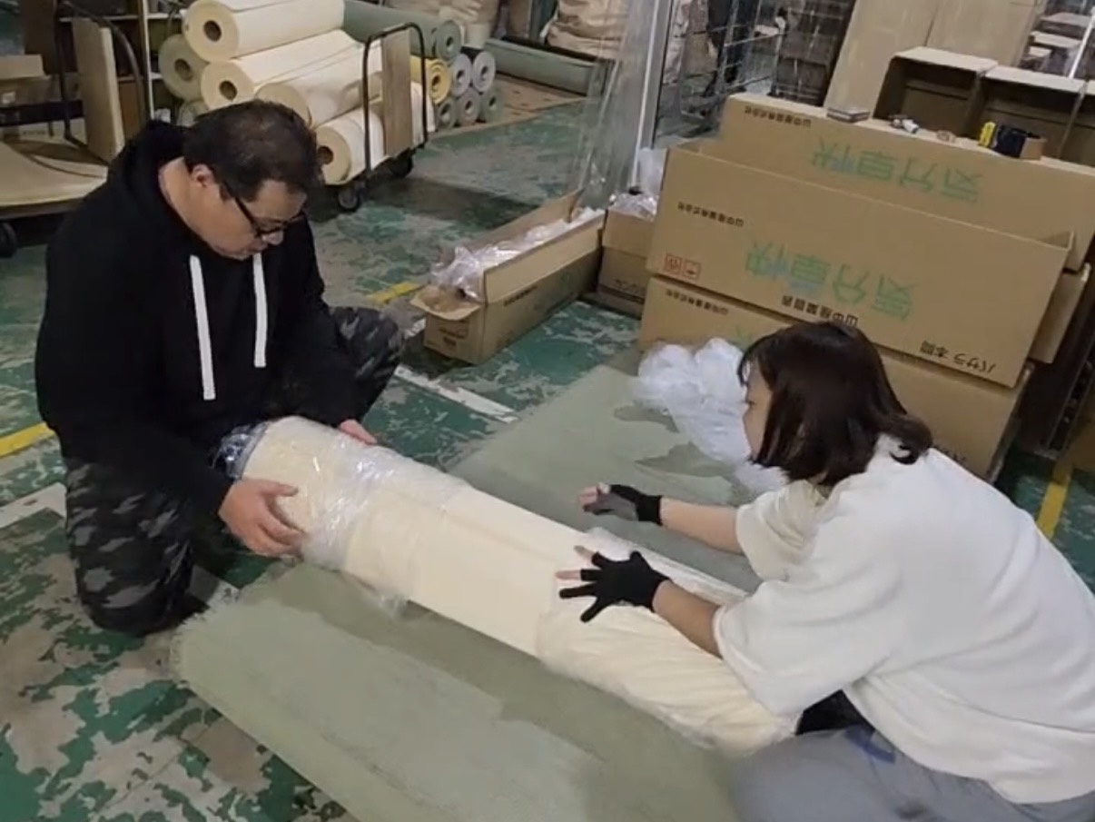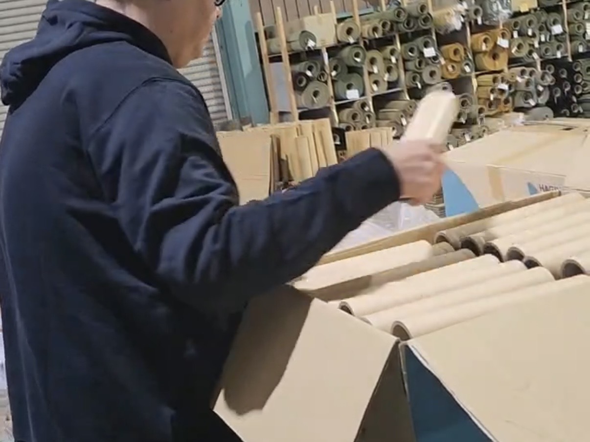 畳の表面に使う樹脂製の原料。これらはすべて、頑丈な紙製の「筒」に巻かれた状態で届きます。