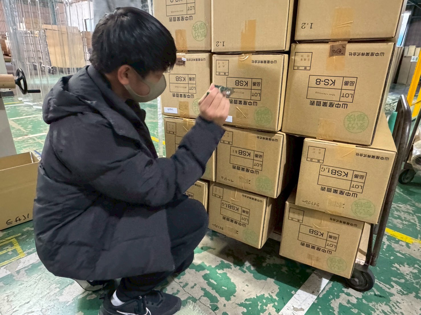 検品が終わった製品に品番のスタンプを押す作業。一見シンプルに見えますが、これも立派な出荷工程の最終段階です。曲がらないように、掠れないように、一つ一つ丁寧に。午前中に学んだ「仕事と作業の違い」を思い出し、「このスタンプ一つが、お客様への信頼に繋がるんだ」という意識で取り組んでくれました。