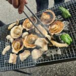 なんと、ホタテ、エビ、イカ、サザエといった新鮮な海の幸が勢揃い!磯の香りが漂い、網の上でジュウジュウと焼ける様は、まさに贅沢の極み。さらに、スパムや旬のトウモロコシなど、バラエティ豊かな食材も加わり、テーブルの上はさながら夢のビュッフェとなりました。